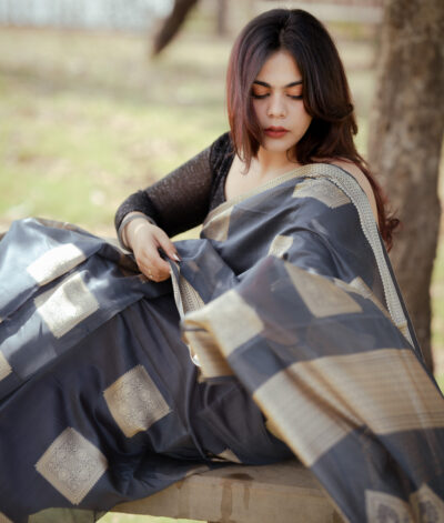 Grey color Maheshwari saree with dull gold work along with elegant blouse piece Fabric : cotton₹2,499.00 × 1₹2,499.00