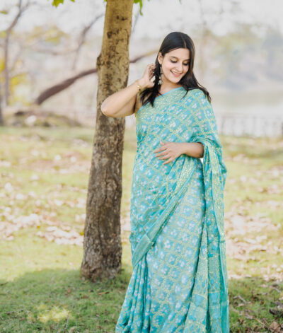 Be the first to review “Beautiful baby pink color Rajasthani ghatchola print with bandhani motifs along with blouse piece Fabric : cotton silk”