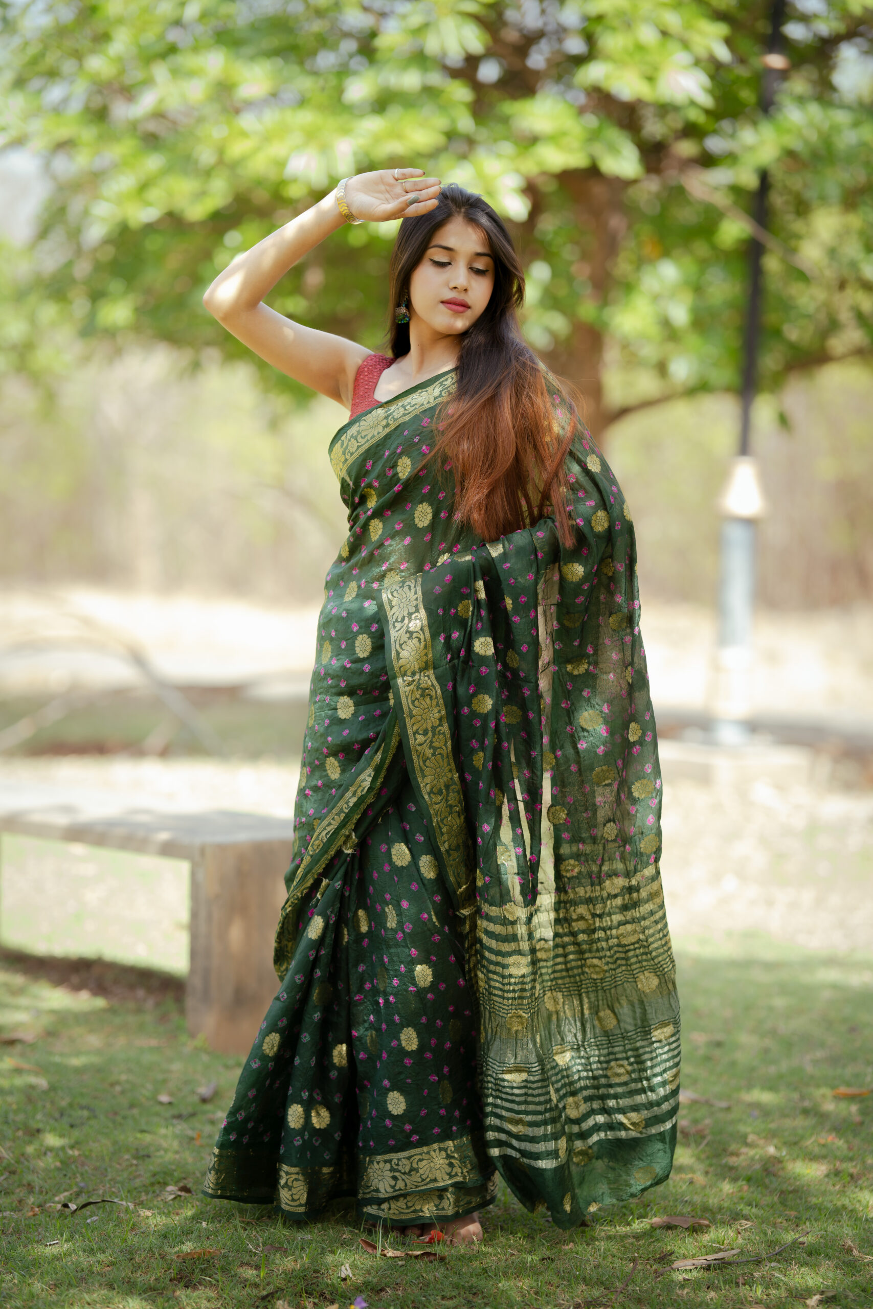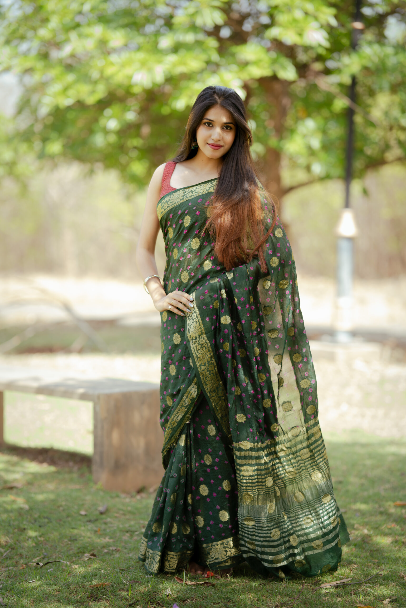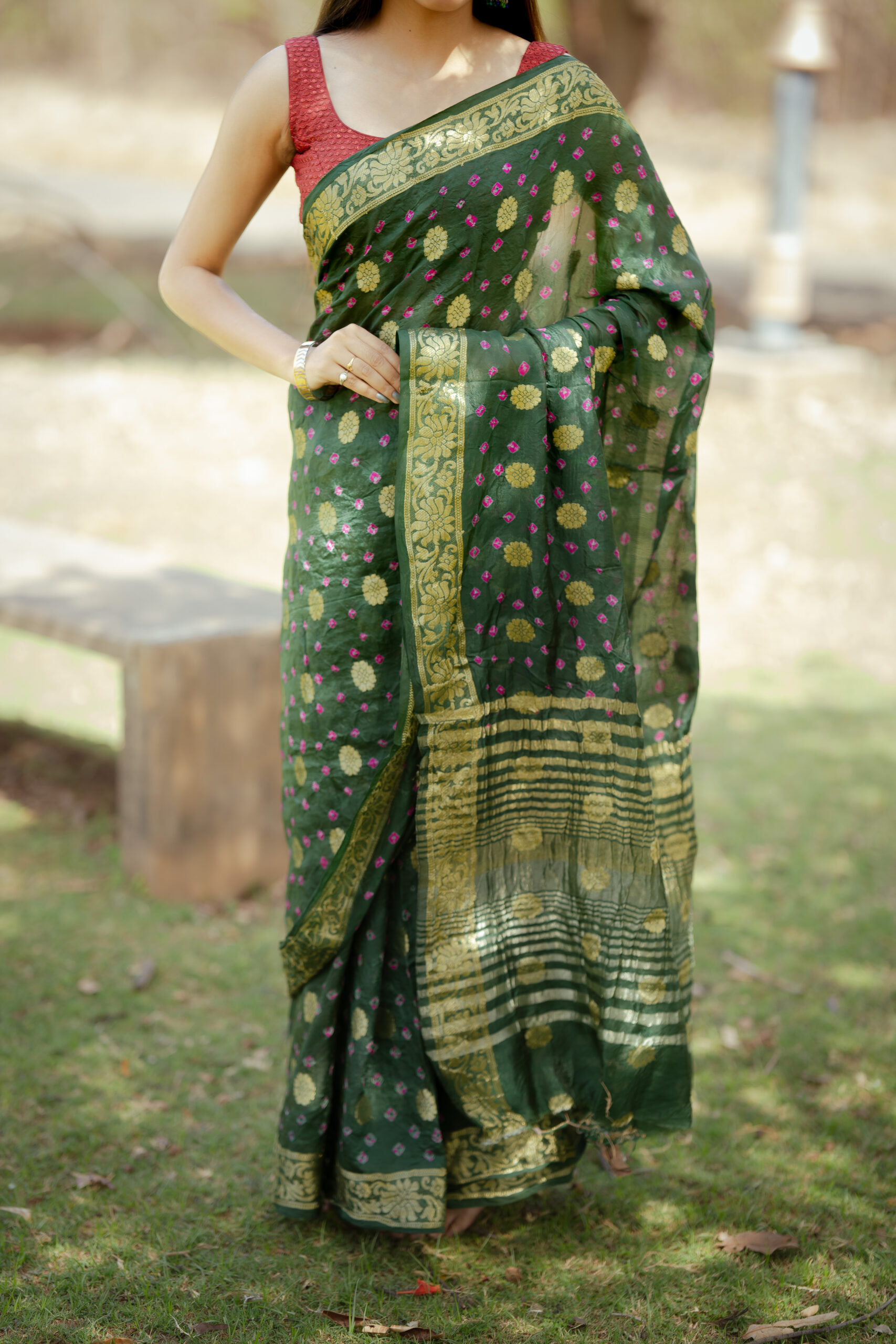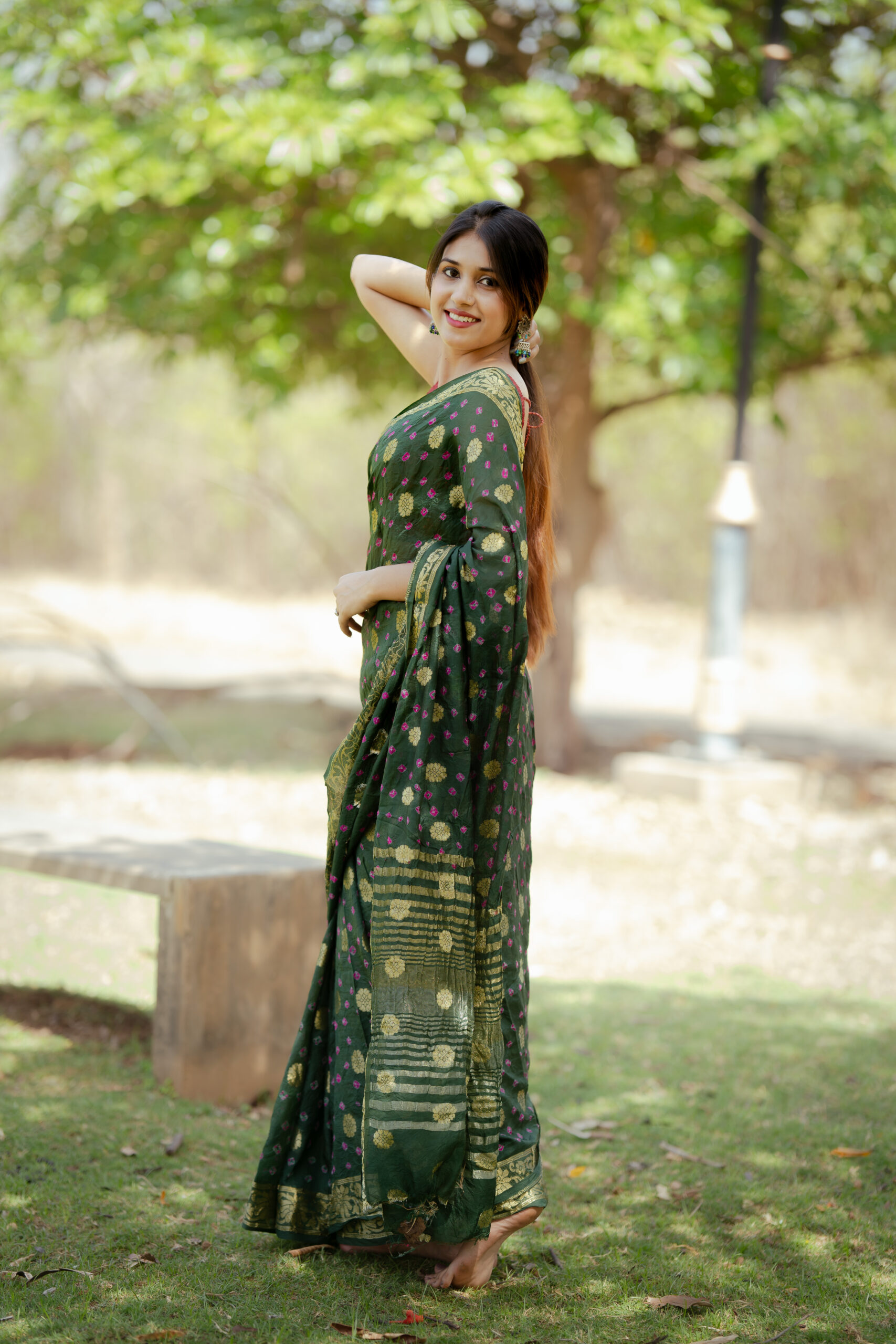 Be the first to review “Beautiful mehandi green color Rajasthani printed saari along with contrast blouse piece